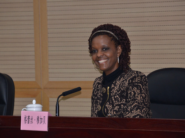 Liu Liqun presided over the lectures and delivered a speech. She said that it is a great honor to listen to Grace Mugabe’s speech, and Grace Mugabe has set up a model of personal career development for students. Liu believed that Grace Mugabe’s speech would broaden students’ horizon of globalization, and inspire their sense of mission and responsibility as citizens of the world.