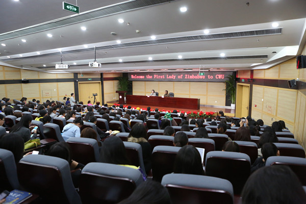 The First Lady Grace Mugabe delivered an impromptu speech to CWU students. She briefly reviewed Zimbabwe's struggle for national independence from British colonial rule, and introduced Zimbabwe’s achievements in promoting equal opportunities for education and social gender equality.