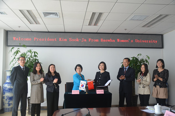 Kim Sook Ja introduced BWU’s history and notable characteristics. Li and Kim discussed the issues of student exchange, curricula and specialist cooperation. They reached consensuses on the construction of characteristic disciplines and subjects, and signed a memorandum of cooperation.