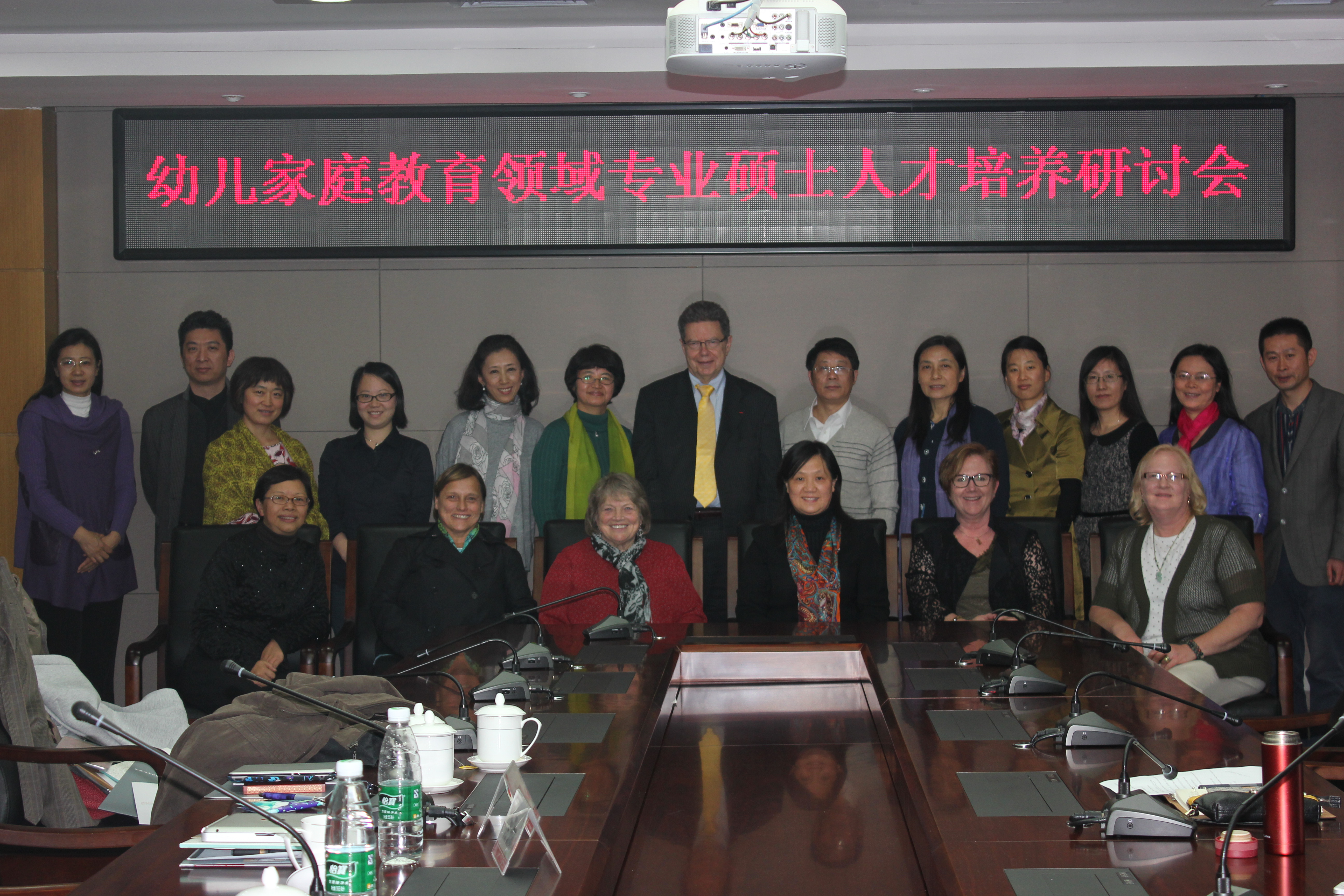 2014年10月31日,由bwin必赢中国官网儿童发展与教育学院主办的“ 幼儿家庭教育领域专业硕士人才培养研讨会”在bwin必赢中国官网教图楼举行。bwin必赢中国官网宋胜菊副校长出席会议并致辞。参与此次研讨会的专家来自美国卡罗大学的Roberta L. Schomburg教授(美学前教育研究会副会长),法国巴黎第十大学的Paul Durming教授,美国明尼苏达州立大学(圣克劳德校区)的Kathy E.Johnson主任和Fran Umerski教授,美国美国卡贝尔大学Cheri J.Gilman教授, 新加坡智源教育学院的陈实博士、凌健主任,全国妇联妇女研究所的和建花副研究员,上海师范大学教育学院学前教育系主任李燕教授、何慧华副主任,以及bwin必赢中国官网儿童发展与教育学院院长王练教授和学前教育系的教师。会议由儿童发展与教育学院的余珍有教授主持,与会专家在现场进行了热烈的研讨,并在家庭教育人才培养的目标定位、家庭教育工作者核心专业能力的确定、家庭教育领域专业硕士核心专业课程的设置等方面提供了宝贵的经验,对我院幼儿家庭教育专硕的人才培养和专业建设具有重要的借鉴价值。