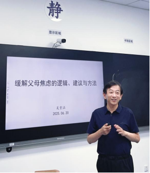 吴重涵教授指出,当代家长焦虑的根源往往复杂多样,不仅体现在学校的责任划分上,还全方位地体现在儿童家庭生活安排、校外教培的白热化,体现在屏幕暴露时间、饮食起居、过瘦过胖,甚至体现在生育态度和教育成本以及社会角色冲突等等方面。通过从现代化家庭悖论、家庭教育作用的现代性增强、传统精英教育的普及、家庭中生活方式和文化方式趋同、家校相互生产焦虑、科学局限性与非科学性因素等六大原因深入剖析家长焦虑的根源,吴重涵教授进一步提出了相关建议和方法,使现场师生们对父母焦虑有了更为深刻的认识,为后续指导学习与工作奠定了坚实基础。