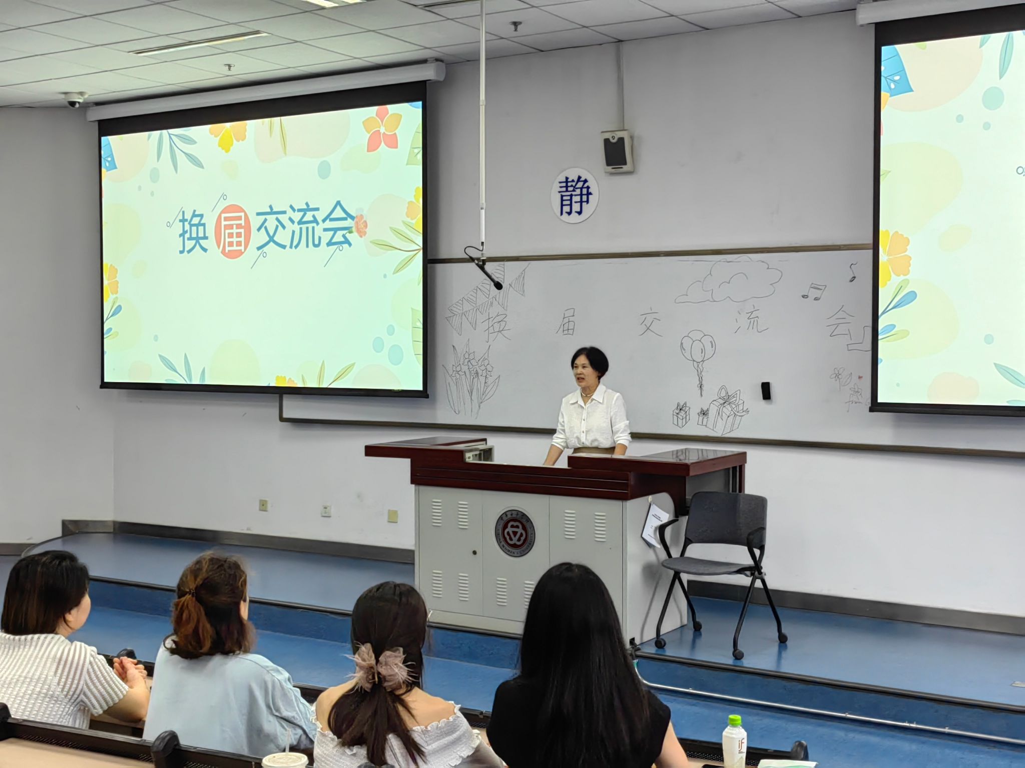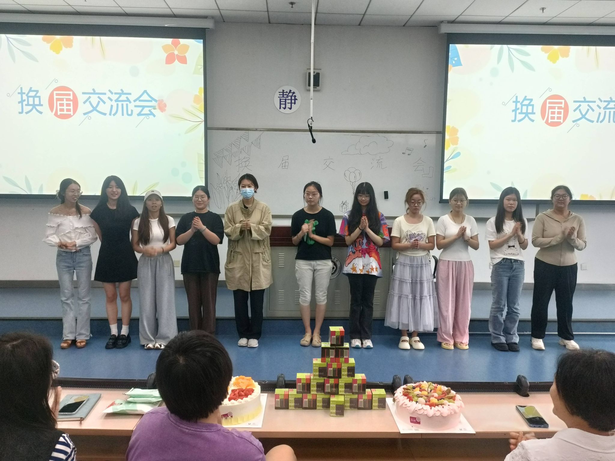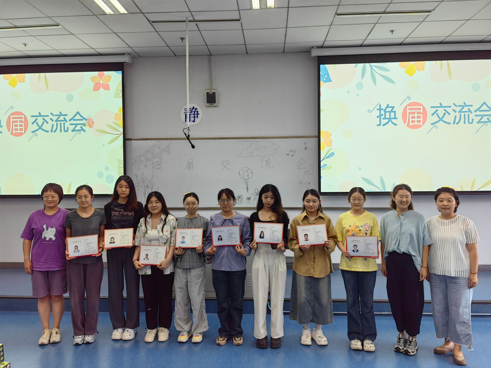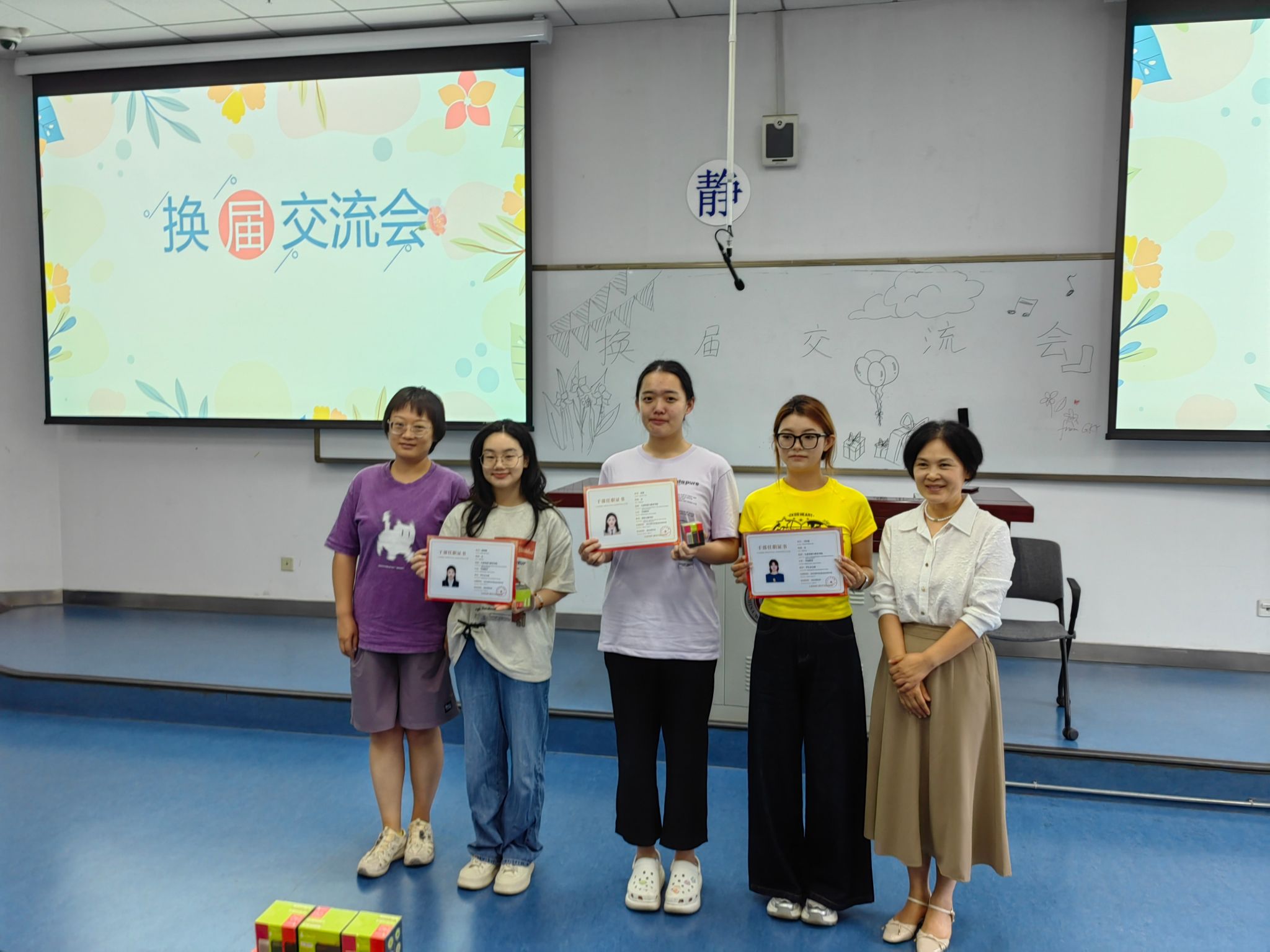 在新一届团学干部的见证下,老师们为上一届干部们颁发了聘书与奖品,亲切的鼓励她们继续努力并合影留念。
