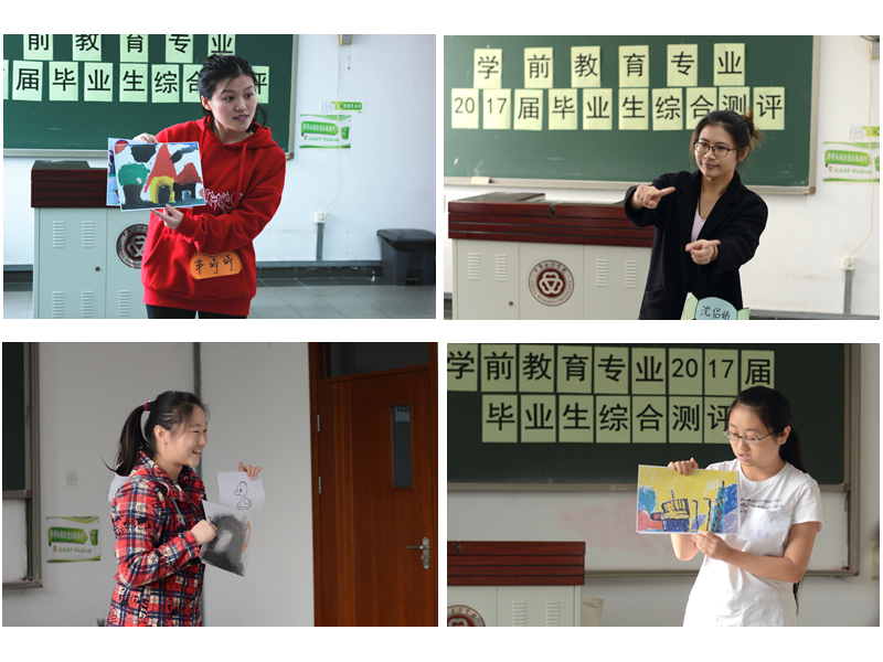 在往年毕业生综合测评的基础上,专业教师结合当前学前教育专业人才培养和市场需求的情况,对本年度的综合测评内容和评分标准进行了调整,此次测评内容包括自我介绍、讲故事、儿歌表演、舞蹈、绘画作品展示与赏析。190名学前教育专业毕业班学生在前期精心的准备的基础上,充分展示了自己通过专业学习在技能技巧方面的成果,整个展示过程中表现出了充分的自信,给专家评委们留下了深刻的印象,我院全体老师对本届毕业生的整体表现也给予了高度的认可。
