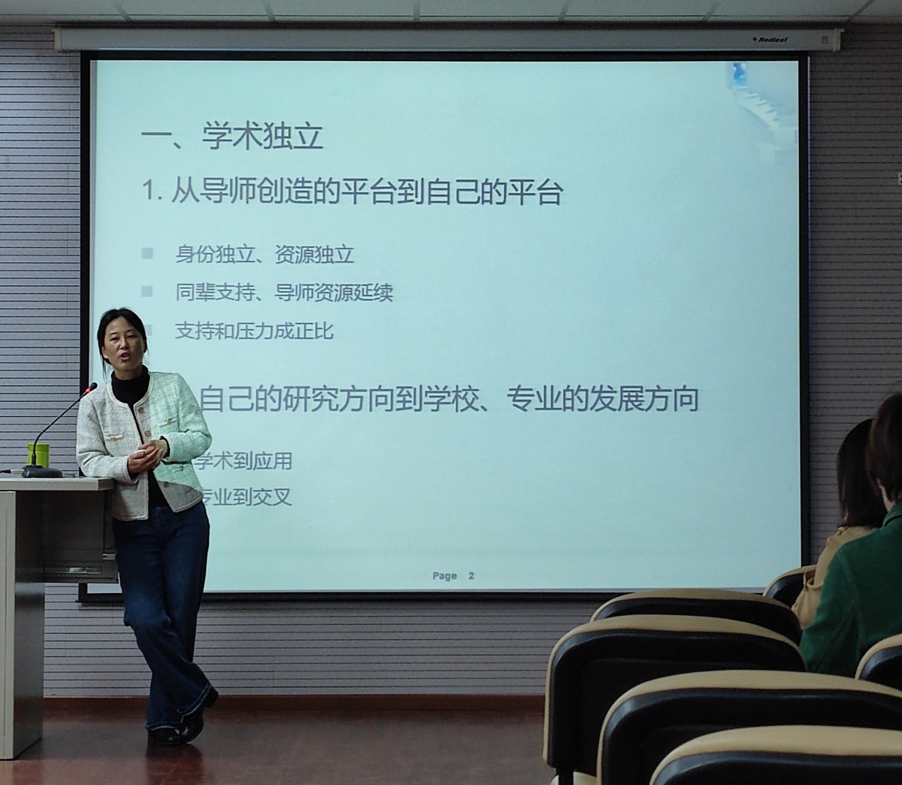 接下来,池丽萍教授分别从“学术独立”、“学术转向”、“从专业发展到生活幸福”三大方面,结合自身体悟,提出并详细解释了每一位教师都必须认真反思和不断探索的诸多重要问题和发展难题:如何实现学术身份独立和资源独立,打造自己的学术平台?如何平衡自己的研究兴趣与国家、学校、专业的发展需求?如何拓展自己的学术视野,寻求跨学科的交叉与合作?如何让自己的学术研究,在社会生活中更有意义?如何理解专业与生活的关系,有效提升自身的专业认同感和生活幸福感?诸如此类,不胜枚举。