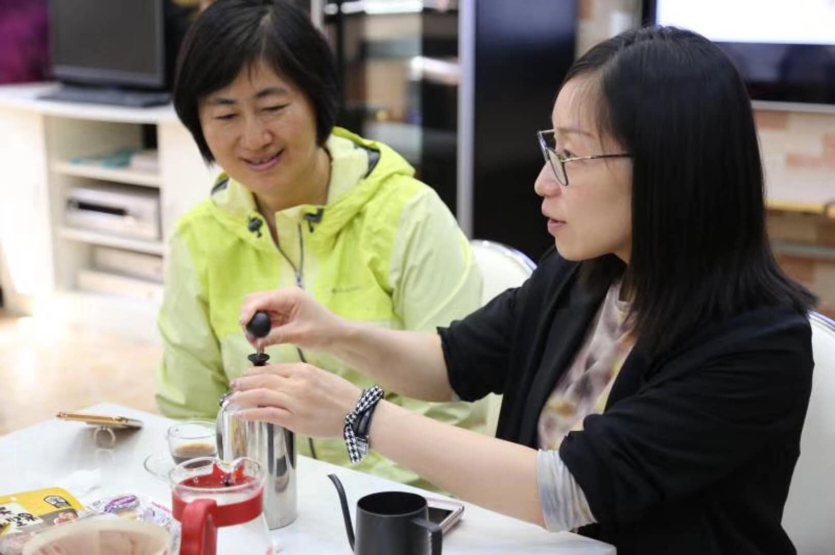 此次教育学院分工会选择了培训课程中的“咖啡品鉴与制作”模块。北京外事学校的教师,结合会员对咖啡知识的需求,从咖啡的起源与分布、咖啡的产地和种类、咖啡的生产加工过程、咖啡的冲泡方法及如何健康的享用咖啡等内容,为会员拓展了咖啡文化。参加培训的教职工3至4人一组,在培训师的指导下,亲自动手冲咖啡、调制了花式咖啡,欣赏专业教师制作。参加活动的教职工热情高涨,在咖啡苦中回甘的韵味里,充分放松身心、感受生活。