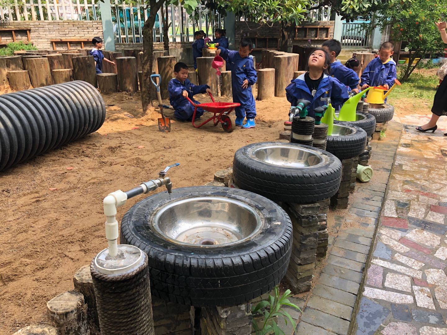 考察团成员走进安吉县紫梅幼儿园、安吉嗳咪儿幼儿园和安吉县机关幼儿园这三所不同办园性质的幼儿园,对其游戏教育活动进行了实地观摩和观察。在幼儿园贴近自然和生活的游戏环境、丰富多样的游戏材料中,孩子们自己选择和搭建游戏场地,齐心地协作、勇敢地挑战、愉快地交谈、投入地玩耍、专注地探索……他们在游戏中展现的勇气、探索精神、旺盛的好奇心、生命力和发展水平令考察团的每一位老师都激动不已,不禁拍手称赞!