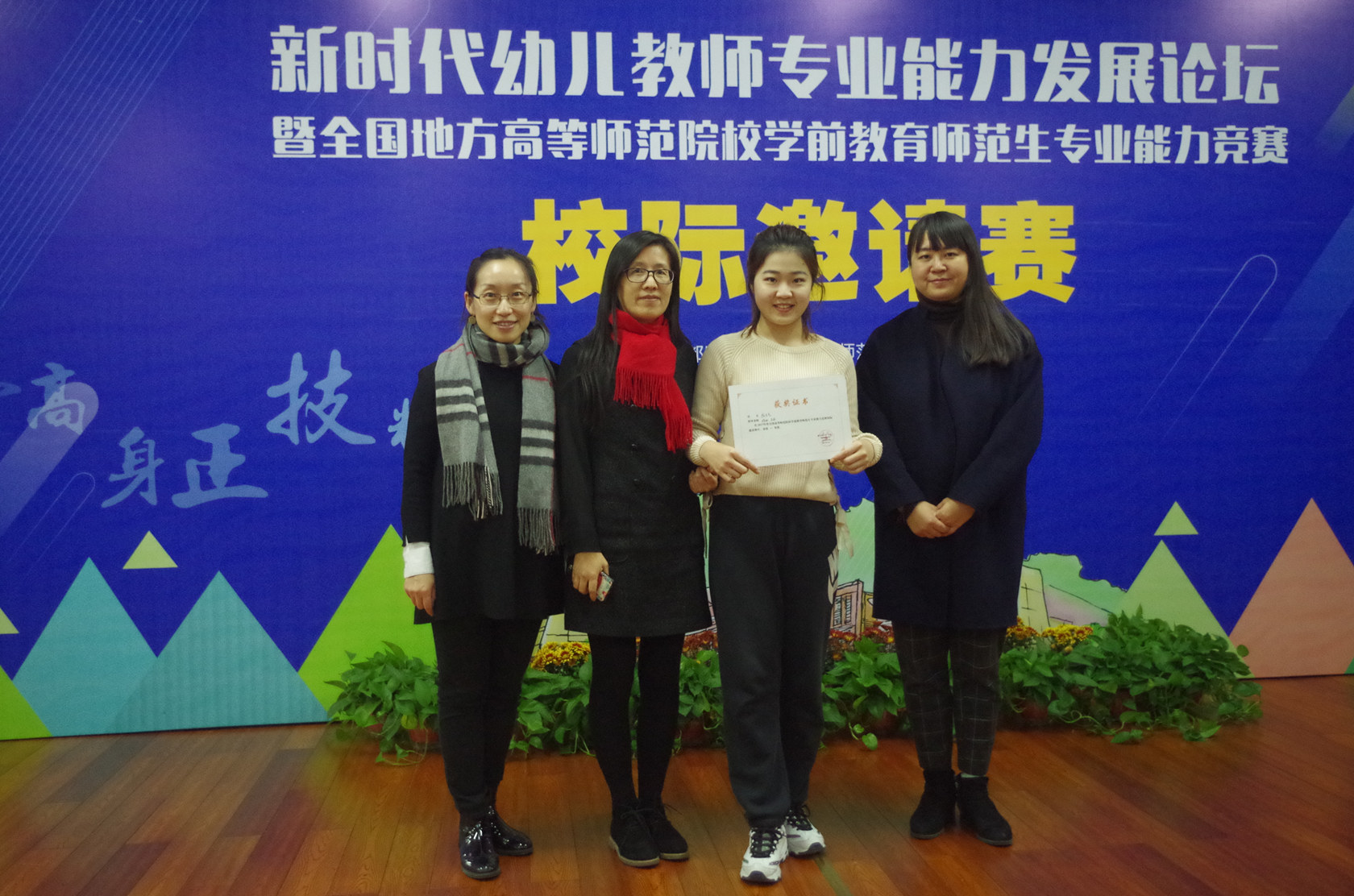 在此次竞赛中,我院在2018届毕业生综合测评中选拔3名学生作为备选对象,学院组织学前教育教研室、学前艺术教育教研室和附属实验幼儿园的老师共同进行个别辅导与培训,最终推荐张子艺同学代表我院参加比赛。该同学在比赛中表现出色,以扎实的专业素养和良好的表现力,获得评委和观摩师生的一致好评,充分展现出女院学前教育专业学子的专业风采,取得了优异的成绩。