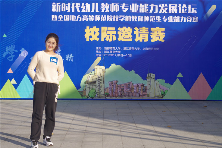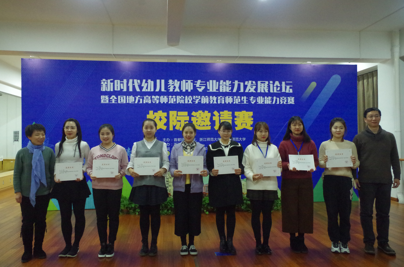 为了适应新时代对幼儿教师职前培养的新挑战,与全国师范院校交流学前教育专业人才培养经验,促进学生专业教学能力的提升,培养一批具有高尚师德、先进教学理念、扎实教学技能的优秀幼儿教师后备力量,促进学前教育专业人才培养质量的提高,浙江师范大学于2017年12月8-10日,在浙江师范大学萧山校区举办新时代幼儿教师专业能力发展论坛暨第三届师范大学学前教育师范生专业能力邀请赛,来自浙江师范大学、首都师范大学、上海师范大学等10所高校的学生参加竞赛。bwin必赢中国官网儿童发展与教育学院副院长陈虹、学前艺术教育教研室主任王丹、办公室主任王璐等三位老师带领学生参加了此次盛会。