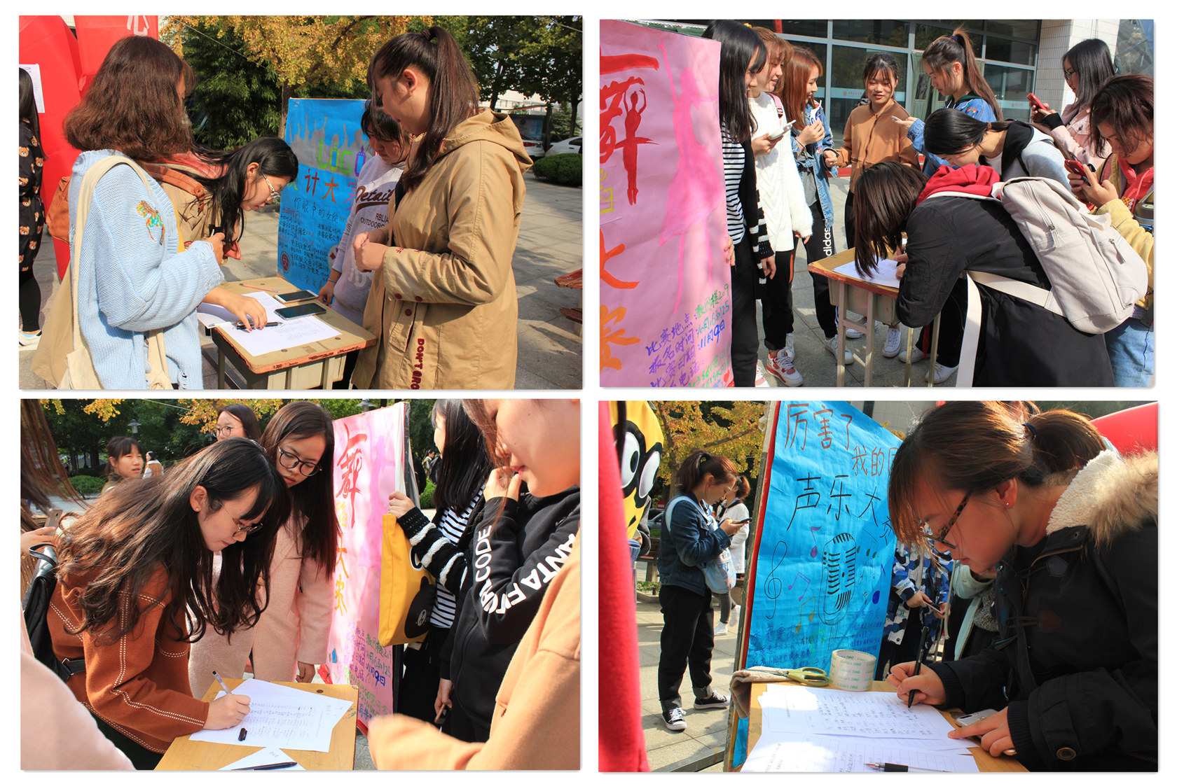 本次第二课堂文化节活动包含手抄报大赛、声乐大赛、logo设计大赛、舞蹈大赛和语言表演大赛五个部分。开幕式现场气氛热烈,制作精美的宣传海报,所有的学生干部认真负责,充满激情的向同学们宣传活动,现场报名场面火爆,同学们根据自己的兴趣爱好,分别报名参加此次第二课堂文化节的各项活动。
