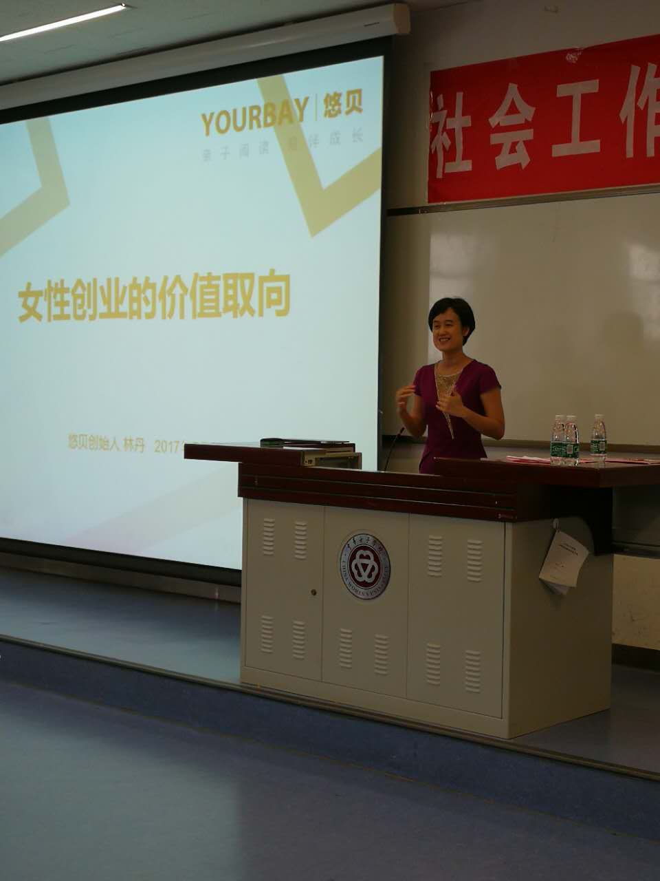 林丹女士为同学们讲述了自己的创业经历,她讲到自己选择亲子图书馆作为创业目标的初心是源于童年喜欢读书的经历,而大学所学的法学专业及毕业后的IT行业从业经历也在能力和思维方面为她的事业奠定了坚实的基础。从自己的成长经历中,林丹女士意识到童年是一个人人生的起点,而父母就是孩子最好的“起跑线”,因此,她所提倡的“亲子阅读”是父母以书为媒介,向孩子传播人生观、世界观和父母的教养观,亲子阅读是父母陪伴孩子、表达爱的最好方式,亲子阅读不仅是教育的途径,更是能密切亲子关系的纽带。