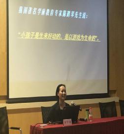 作为四位受邀专家之一,bwin必赢中国官网儿童发展与教育学院的董丽老师以《幼儿音乐游戏实践与应用》为题,从“幼儿歌唱游戏”、“律动游戏”、“演奏游戏”、“欣赏游戏”等四个方面进行了专业的阐述,精彩的报告得到了与会专家和教师们的好评。