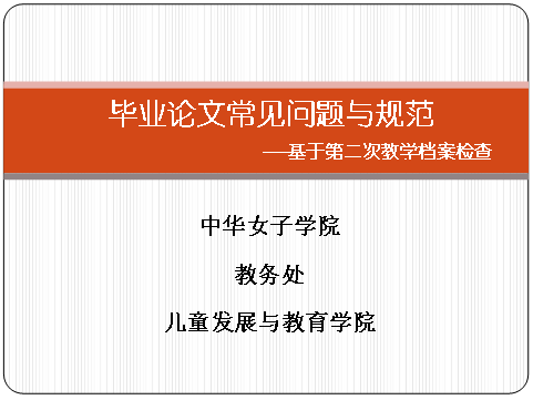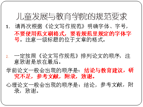 为了更好的迎接学校本科评估的审核工作,加强二级学院自身的管理和建设工作,规范各个教学环节以及教学档案,教育学院在学校教学档案细则的部署下,根据专业特色和要求,制定了教育学院毕业论文的写作规范。在2017年5月2日的例会上,教育学院教学负责人张雯老师就教育学院的毕业论文写作规范进行了详细的讲解,以PPT分步骤讲解的方式组织毕业论文指导的全部教师认真学习了写作规范,会后教学秘书曹红老师和吴丹老师对所有毕业班的学生进行了毕业论文写作规范方面的培训。