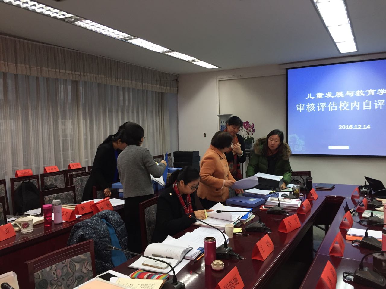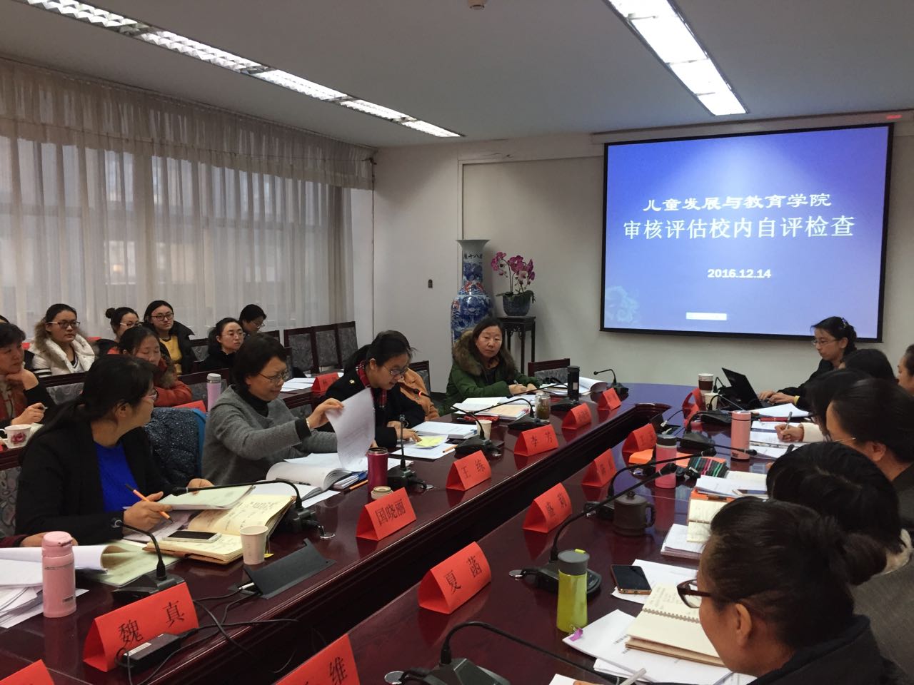 根据学校关于《开展本科教学工作审核评估自评工作的通知》,儿童发展发展与教育学院于2016年12月14日星期三下午1:30-5:00 在主楼217第七会议室召开了儿童发展与教育学院审核评估校内自评检查汇报会。会议由儿童发展与教育学院党总支副书记盛莉主持,儿童发展与教育学院副院长陈虹做主要汇报,儿童发展与教育学院全体教职工、部分学生代表和质监处副处长陈岚、史晔华列席参加。学校互评工作组的专家成员包括:王练(bwin必赢中国官网副院长,校专家组组长)、国晓丽(金融系副系主任,校专家组副组长)李芳(对外经贸大学教务处处长,校专家组成员)、孙晓梅(女性学系教授、校专家组成员)魏真(教学督导组成员,校专家组成员)、李敏(社会工作学院院长助理、校专家组成员兼秘书)。