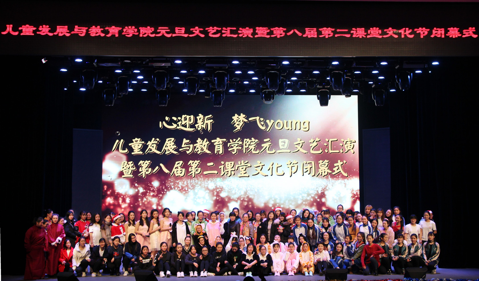2016年12月27日下午,儿童发展与教育学院“心迎新 梦飞young”元旦文艺汇演暨第八届第二课堂文化节闭幕式在学校礼堂隆重举行,学生工作(部)处处长兼团委书记韩燕、北校区主任郭春鸿、北校区党总支副书记张晓亮、儿童发展与教育学院党政领导以及来自其他院系和相关职能部门的老师,与学院全体学生一起,共同观看了文艺汇演,迎接新年的到来。