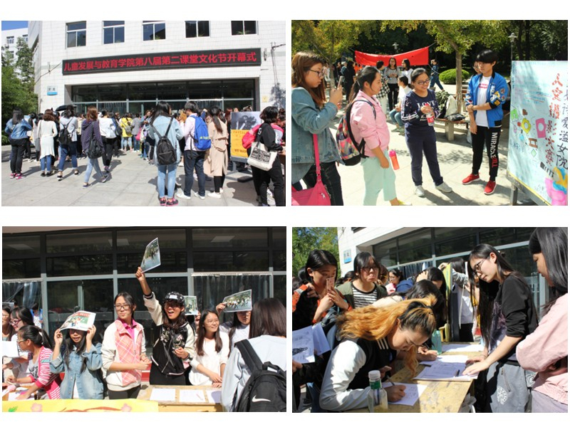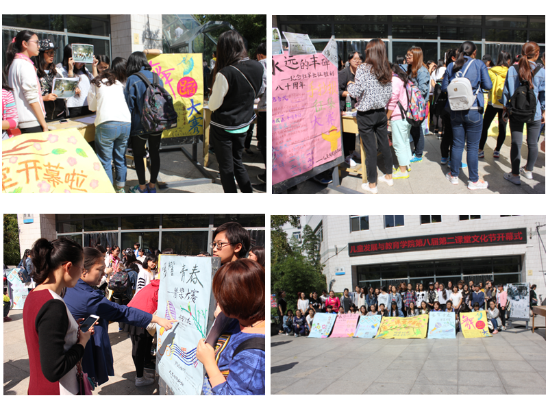 为丰富学生校园文化生活,给学生提供展示和锻炼自我的平台,儿童发展与教育学院第八届第二课堂文化节于2016年10月18日在食堂门口顺利拉开序幕。本届第二课堂文化节依然坚持以学生为本的理念,通过前期的精心策划,在接下来的两个月内,我院团总支、学生会将陆续开展包括:语言表演大赛、摄影大赛、手抄报大赛、声乐大赛、舞蹈大赛等活动。开幕式现场氛围浓厚,在激动人心地欢歌中,同学们纷纷踊跃报名。