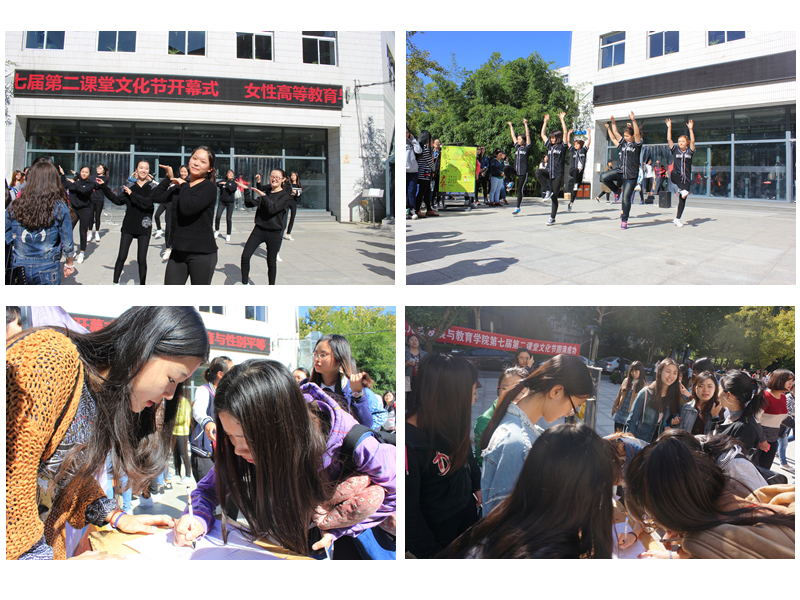10月12日中午,儿童发展与教育学院第七届第二课堂文化节在学校食堂广场前拉开了序幕。第二课堂文化节是儿童发展与教育学院的品牌校园活动之一,迄今为止已连续举办七届,旨在通过系列活动的开展,丰富校园文化生活,为我院学子提供展示自我的平台,为提升学生综合素质创造机会;本届第二课堂文化节依然坚持以学生为本的理念,服务学生的成长成才,通过前期的精心策划,在接下来的两个月内,我院团总支、学生会将陆续开展包括声乐大赛、舞蹈大赛、语言表演大赛、形象设计大赛等在内的系列活动。开幕式现场,同学们用动感青春的舞蹈展示着我院学子积极向上的精神风貌,火爆的报名登记现场也预示着本届第二课堂文化节将取得圆满成功。