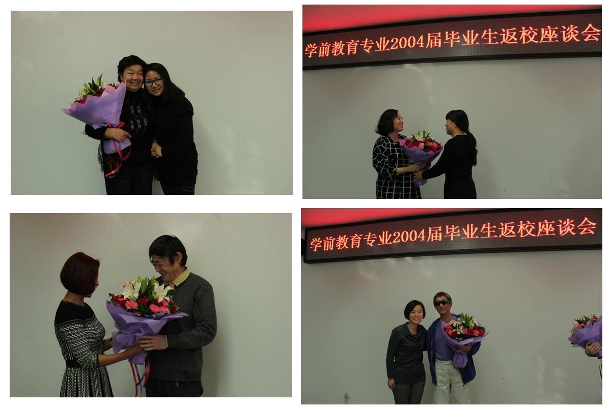 校友座谈会现场气氛轻松温暖,见到昔日的老师,返校的校友们激动万分,她们为老师们献花,感谢老师们曾经的辛勤付出和谆谆教诲;校友们还精心制作了PPT,一起回顾难忘的大学时光,分享毕业后的个人奋斗经历与收获;参加活动的老教师们也谈起了往事,并一一叫出了校友的名字,就像是多年未见的老朋友一般,让校友们感受到了家的温暖;赵伟老师介绍了学院近年来的发展情况以及所取得的重大成就,希望校友们与学院之间搭建联系的平台,常回家看看。