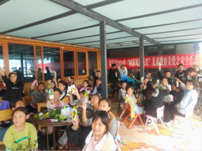 伊乌社区的孩子们踊跃回答问题
