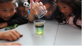 沐恩邸社区的孩子们在观察实验中的“神奇彩虹雨”