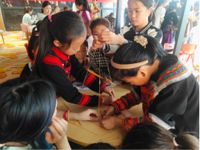 在南坪社区和伊乌社区,“筑梦童行”队通过“沙漠掘金”游戏,寓教于乐,不仅增强了孩子们的团队协作能力,还激发了他们解决问题的能力;“寻忆家乡”活动,用自然的花草制成香包、将采集到的花草制成花草签,孩子们在专注细致的手作中表达着对自然和家乡的热爱,感受家乡的美。