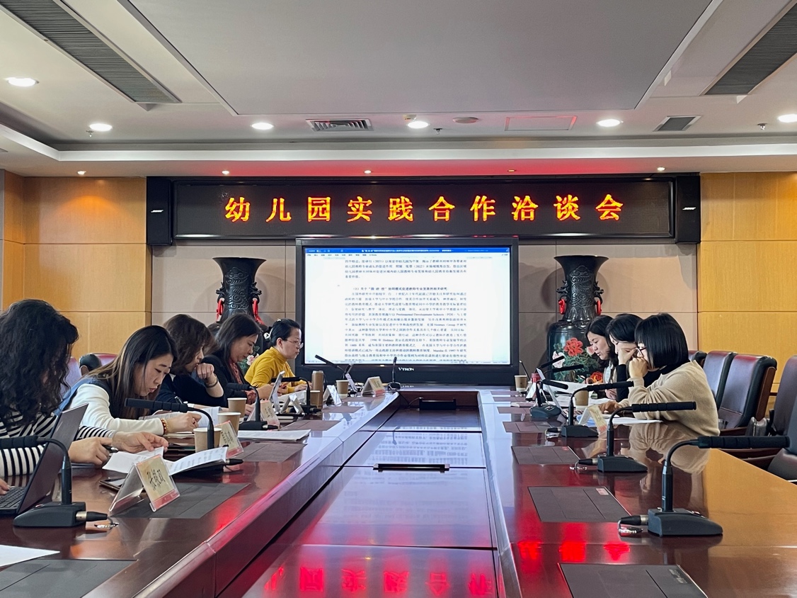 随后,赵梅菊博士介绍了春季学期学生教学实践的安排,朝花幼儿园对于接收学生见习和实习的工作思路进行了说明。三方参会成员最后围绕科研课题合作、学前教育专业实习实践合作问题进行了深入探讨,均希望以此次见面为契机,在寻求机制创新和经费支持的基础上进一步拓展合作。