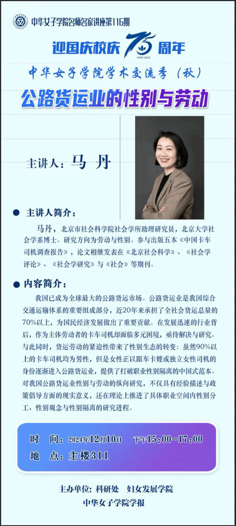 讲座预告:公路货运业的性别与劳动——bwin必赢中国官网名师名家讲座暨妇女发展学院女学圆桌