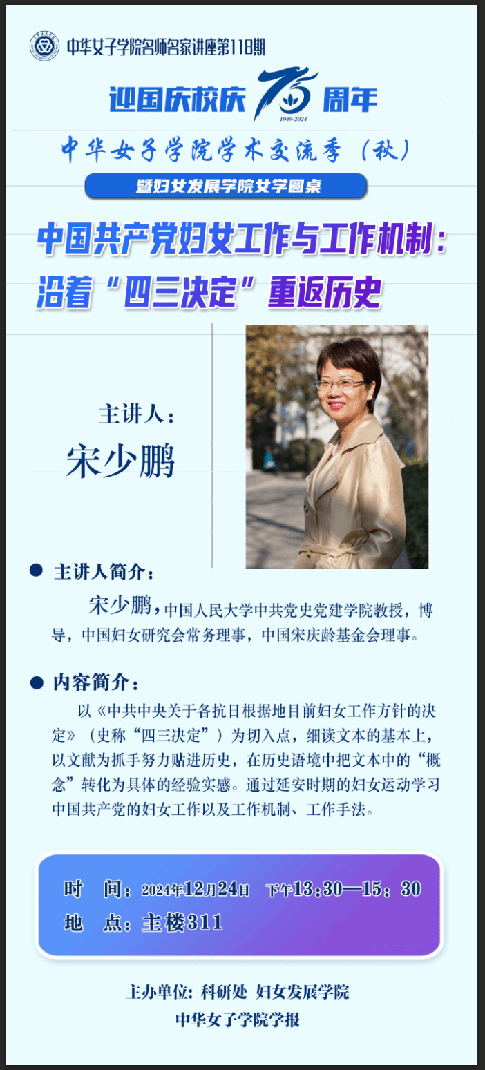 讲座预告:中国共产党妇女工作与工作机制————bwin必赢中国官网名师名家讲座暨妇女发展学院女学圆桌