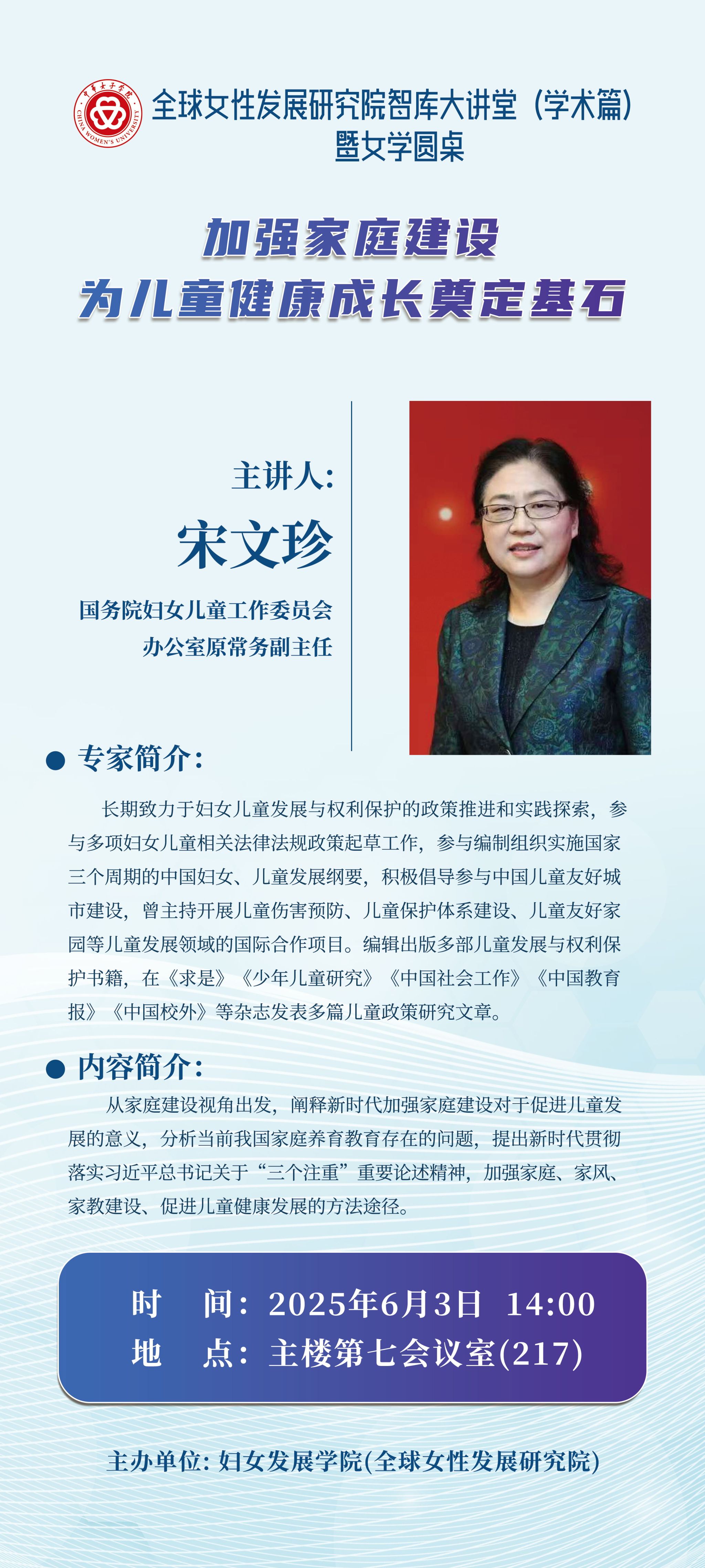 讲座预告:加强家庭建设 为儿童健康成长奠定基石——全球女性发展研究院智库大讲堂暨女学圆桌
