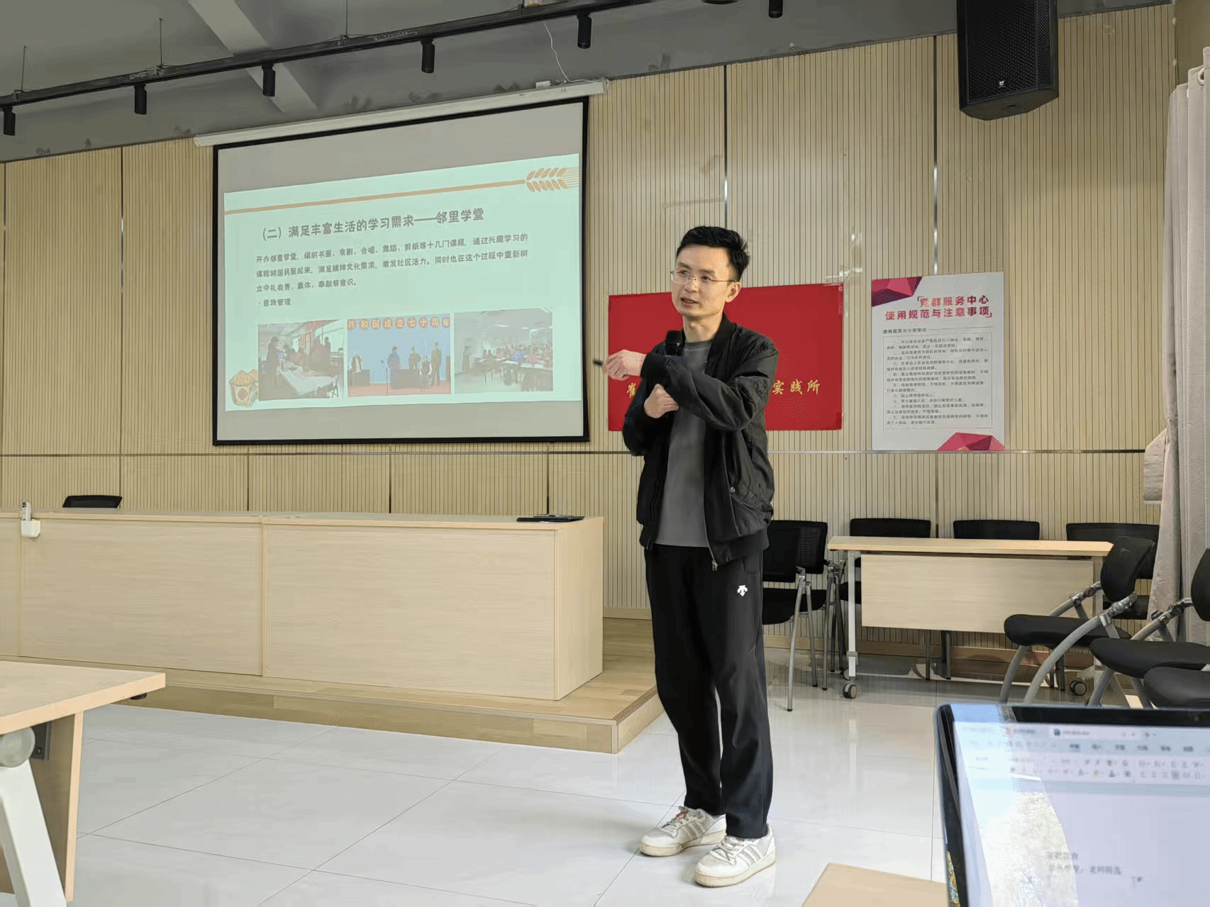 在参观社区共建花园项目及崔各庄地区党群服务中心期间,魏儆麟老师还特意布置作业,引导同学们运用项目管理思维,思考社区共建花园项目的设计思路以及复杂利益相关者关系的处理方式。他还以“京旺家园”为例,向同学们系统介绍了近邻社会工作发展中心扎根京旺家园社区开展的实务工作。京旺家园作为北京典型的“农转居”回迁社区,兼具城乡的多元特征,既保留了传统农村的熟人社会网络与乡土特色,又面临着城市化进程中的新需求。在这里,传统文化与人情伦理成为社区治理的关键资源。社区项目成果中的关键经验为:团队以 “两个结合” 战略为导向,注重挖掘文化资源在社区治理中的价值,通过开展家庭教育、邻里学堂等特色项目,激发了居民自我管理、自我奉献、自我教育的集体精神,致力于打造 “大同社区”。同时,同学们也进一步明晰了项目管理从规划、实施到发挥效用的全过程,为今后独立开展项目奠定了坚实基础。
