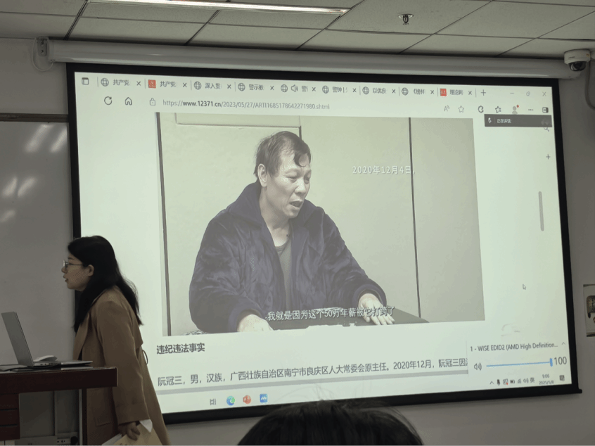 随后,党员们认真学习了《中央列出违反八项规定清单 80 条》,加深了对规定细节的理解,强化了纪律红线意识;紧接着,共同观看了共产党员网关于阮冠三违纪违法事实的视频。视频中,阮冠三理想信念崩塌,利用职务之便谋取私利,最终沦为阶下囚的惨痛教训,为党员们敲响了警钟,起到了深刻的警示教育作用。