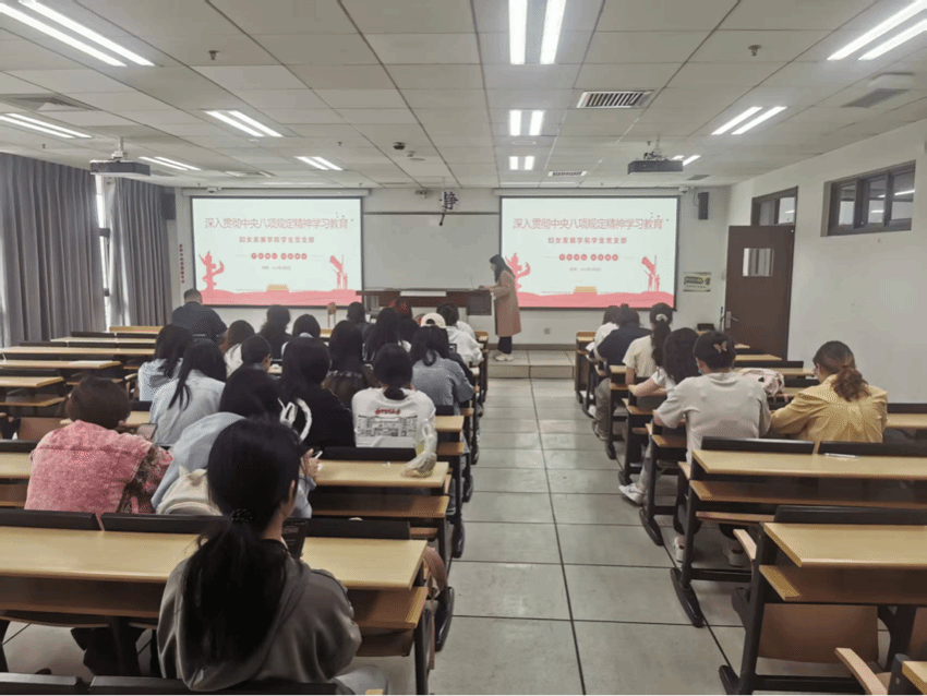 会议伊始,学生党支部书记杨静姝着重阐述学习中央八项规定精神的重要性。她指出,八项规定是推进作风建设的重要抓手,关乎党的形象与民心所向,全体党员务必深刻领会、严格践行。
