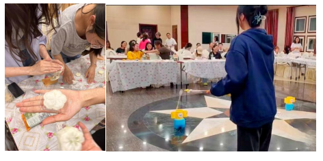 随后便开启了一系列富有创意的互动游戏,有你画我猜、听歌识曲、投壶PK等等,现场气氛热烈,笑声不断,掌声阵阵。当然,最激动人心的部分莫过于DIY月饼制作环节,同学们亲手制冰皮做月饼,体验了传统美食制作的乐趣,收获了中秋佳节的美好祝愿。