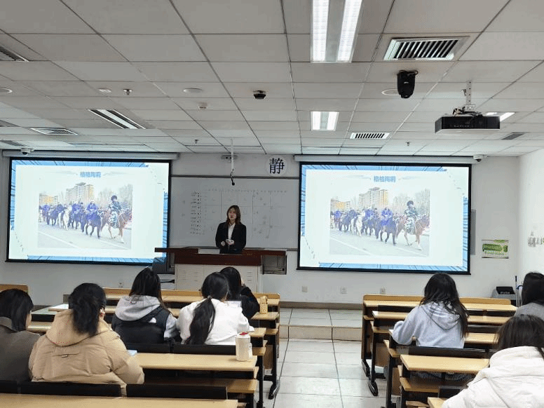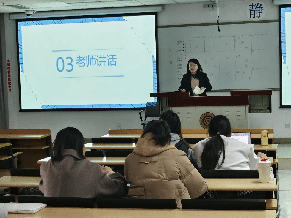 随后,辅导员杨老师对同学们以“影像+叙事”的创新分享形式表示了高度赞扬,同时就新学期的学习和日常生活安全等方面进行了强调,并在寄语中表示:“每一帧画面都是对家乡的深情告白,希望同学们在新学期以同样热忱投身学习与社会实践,让女性力量在文化传承中绽放光彩。”