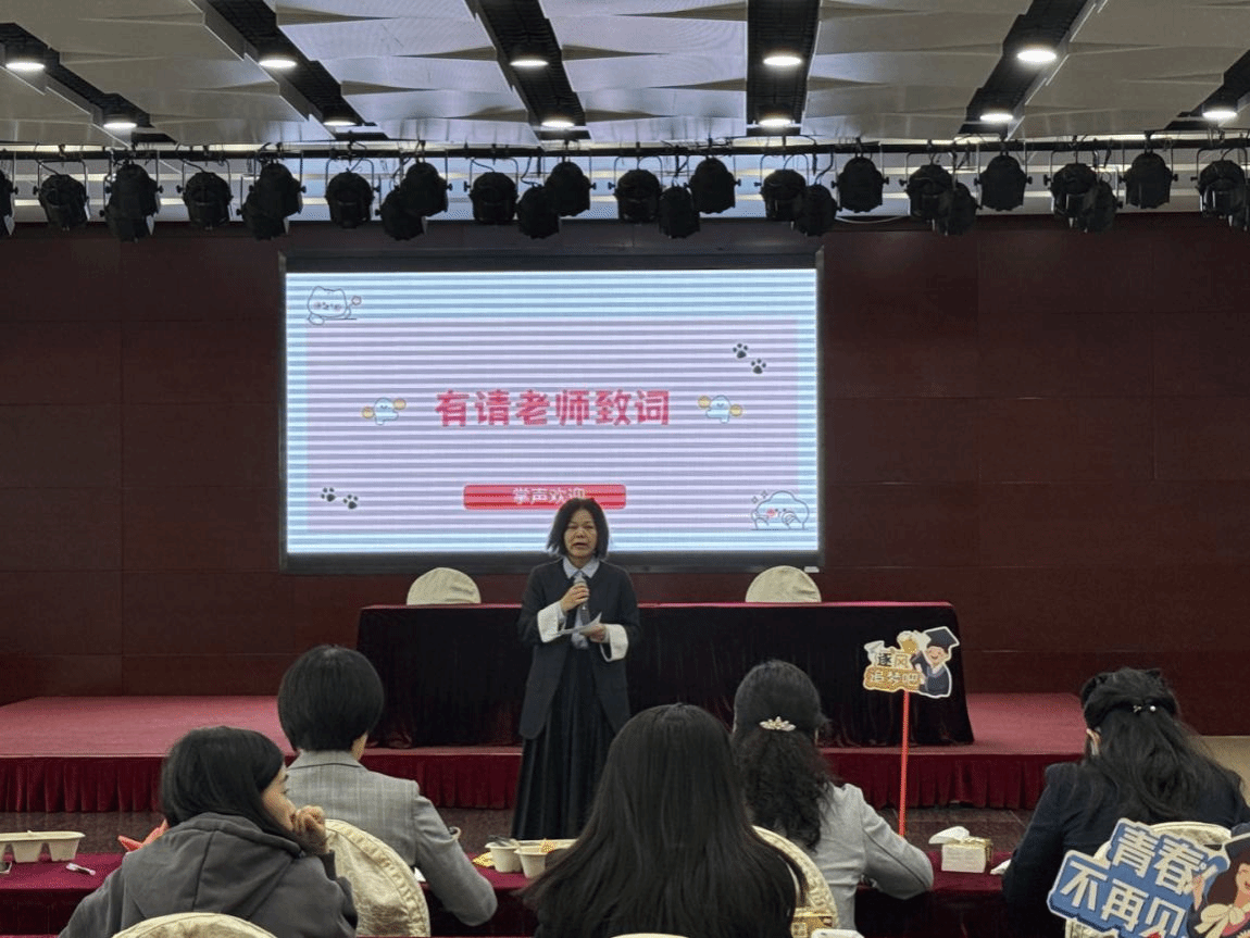 妇女发展学院院长魏开琼引用《诗经》“如圭如璧,如松柏之茂”,寄语学子保持如玉品格与松柏韧劲。“希望你们既要做专业领域的探路者,更要成为性别平等的推动者。”魏老师特别强调,在人工智能时代更要坚守人文关怀,将女院特有的社会性别意识融入职业发展。
