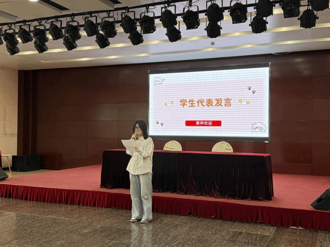研究生代表郭以宽即将奔赴祖国新疆地区,投身西部建设,他通过“破界、烙印、奔赴”三个关键词讲述了自己在女院的成长路径,诠释了新时代青年担当,并呼吁同窗们"将个人理想熔铸于民族复兴的星辰大海"。