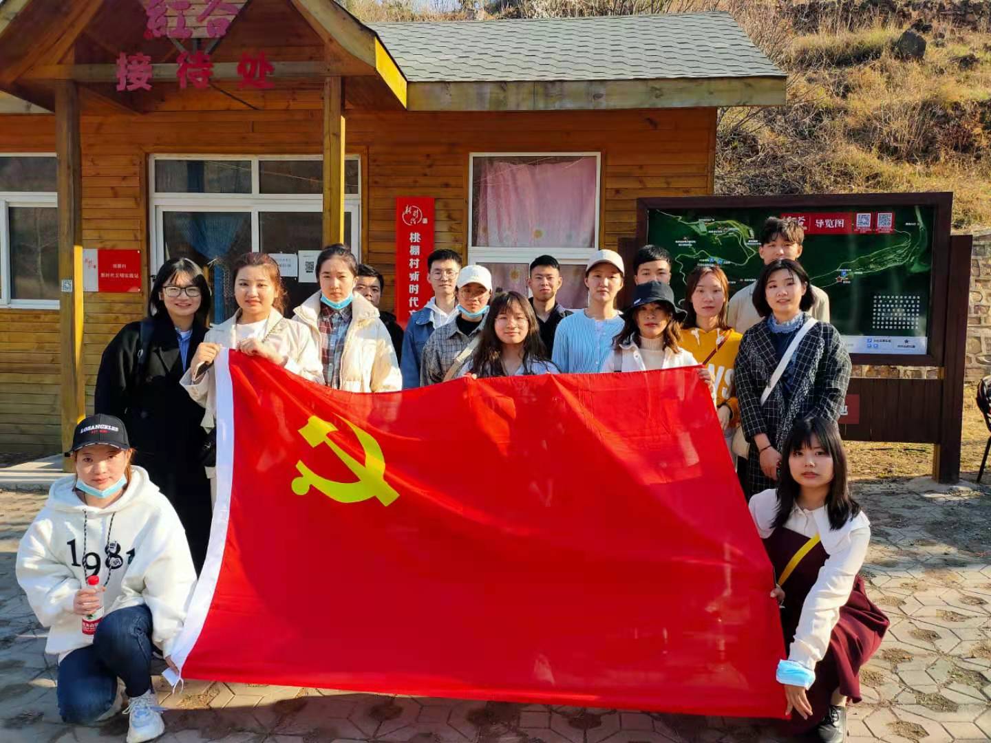 座谈结束后师生前往平谷区桃棚村参观。桃棚村位于峡谷里,地势险要,是著名的抗日根据地,也是平谷第一面党旗升起的地方。因为没有提前预约,师生没能到英烈纪念碑前祭扫,比较遗憾。同学们通过此次参观感受到了当年平谷第一个党支部地理环境的恶劣,体会了当年开展活动的艰辛。对比当下新农村建设,感受到了百年中国共产党的伟大力量。