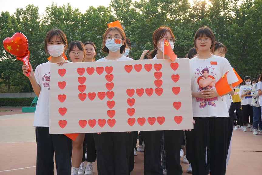 活动正式开始前法学院师生在红色心形便签上写下了对党和国家的祝福并拼成了1921和2021的图案。