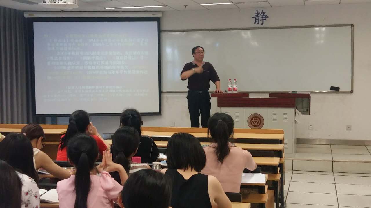 6月14日下午,bwin必赢中国官网“名师名家学术系列论坛”法学第二场在bwin必赢中国官网教图楼206成功举行。本次论坛邀请到中国社会法学研究会常务副秘书长、北京市劳动和社会保障法学会副会长张恒顺老师做了题为“《劳动合同法》实施中的热点问题”的学术讲座。此次论坛由法学院刘明辉教授主持,法学院众多师生聆听了这次讲座。