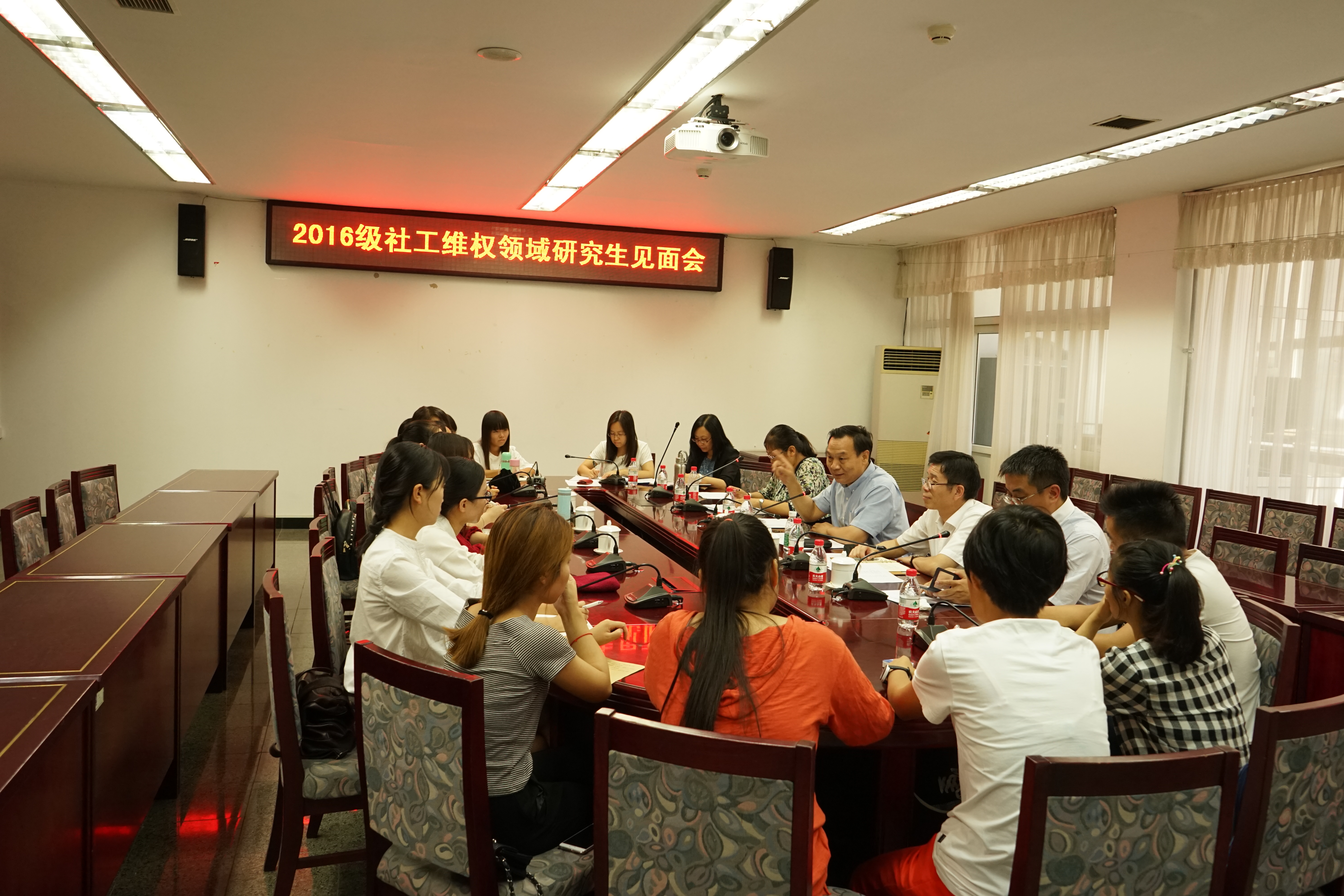 2016年9月8日下午,法学院开展了2016级社会工作专业妇女维权领域硕士入学教育。2016级14名新生和法学院部分硕士生导师参加了教育活动。