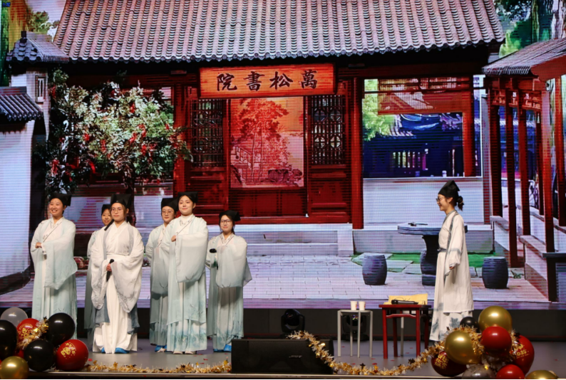 经典与创新交织,舞台艺术绽放光彩。小品《当霸总文学照进职场》《爱情公寓》与漫才《大巴车上的奇怪邻座》捕捉生活微光,带给大家不期而遇的喜悦;《少爷和我2.0》则以妙趣横生的演绎,彰显了青龙帮的侠肝义胆与深厚情谊;《万松书院》则深情演绎了纯真无价的师生情谊与挚友相伴的温暖。戏剧《新白雪公主》与音乐剧《新小美人鱼》以新颖视角重塑经典,白雪公主智慧地运用法律武器击败邪恶王后,小美人鱼则以她那婉转动听的歌声,激励着每一位女孩勇敢前行。舞台走秀更是风格多样,传递着时尚的新意。