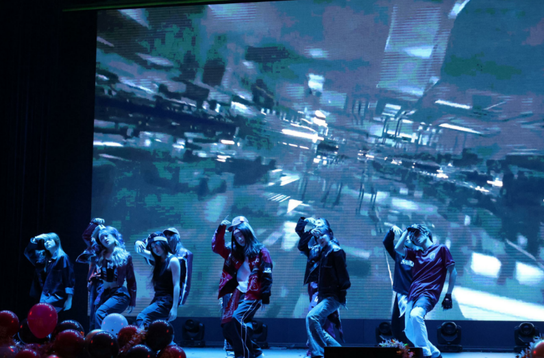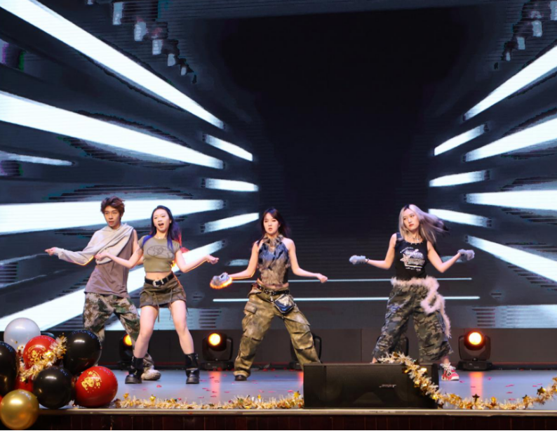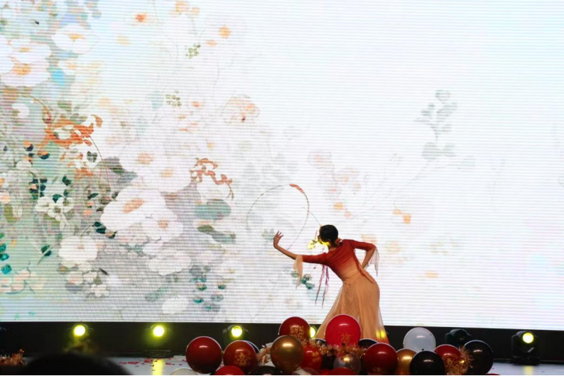 古典与现代交织,舞蹈盛宴启幕。古典舞轻盈起步,从《洛春赋》的牡丹之艳,到《故梦》与扇舞《青花瓷》的诗意流淌,再到瑜伽《映山红》的温婉坚韧,一系列表演交织出一幅幅细腻的历史画卷,将观众缓缓带入往昔的雅致时光。现代舞灵动接棒,迪斯科《扑通100大舞厅》的欢快节奏点燃了现场气氛,欢乐无限蔓延;舞蹈K-POP《玫瑰人生》《Whiplash》与《BITE BACK》以激扬的热力与精湛舞技,将青春力量尽情挥洒,为舞台注入青春活力。