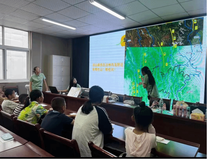 接下来正式上课,第一天的主题是“绿水青山就是金山银山”,主讲队员刘嘉怡、王洪艳通过对凉山州地理位置、地形地势及生态环境的生动介绍,引入习近平生态文明思想,告诉小朋友们“绿水青山就是金山银山”。呼吁大家爱护自然、保护环境,热爱自己的家乡。