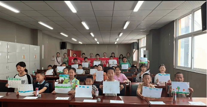 7月14日早晨,蒲公英实践团的成员们怀着喜悦期待的心情乘着蒙蒙细雨,迎着小朋友们欣喜的目光,走进了凉山州甘洛县新市坝镇城东社区妇女儿童之家,正式开启了第一天的活动。在实践团师生到达之前,参加活动的孩子们已经到达许多,从幼儿园的学龄前儿童到初中生,社区的孩子和家长们对实践团寄予厚望。实践团成员首先与学生们合影留念。