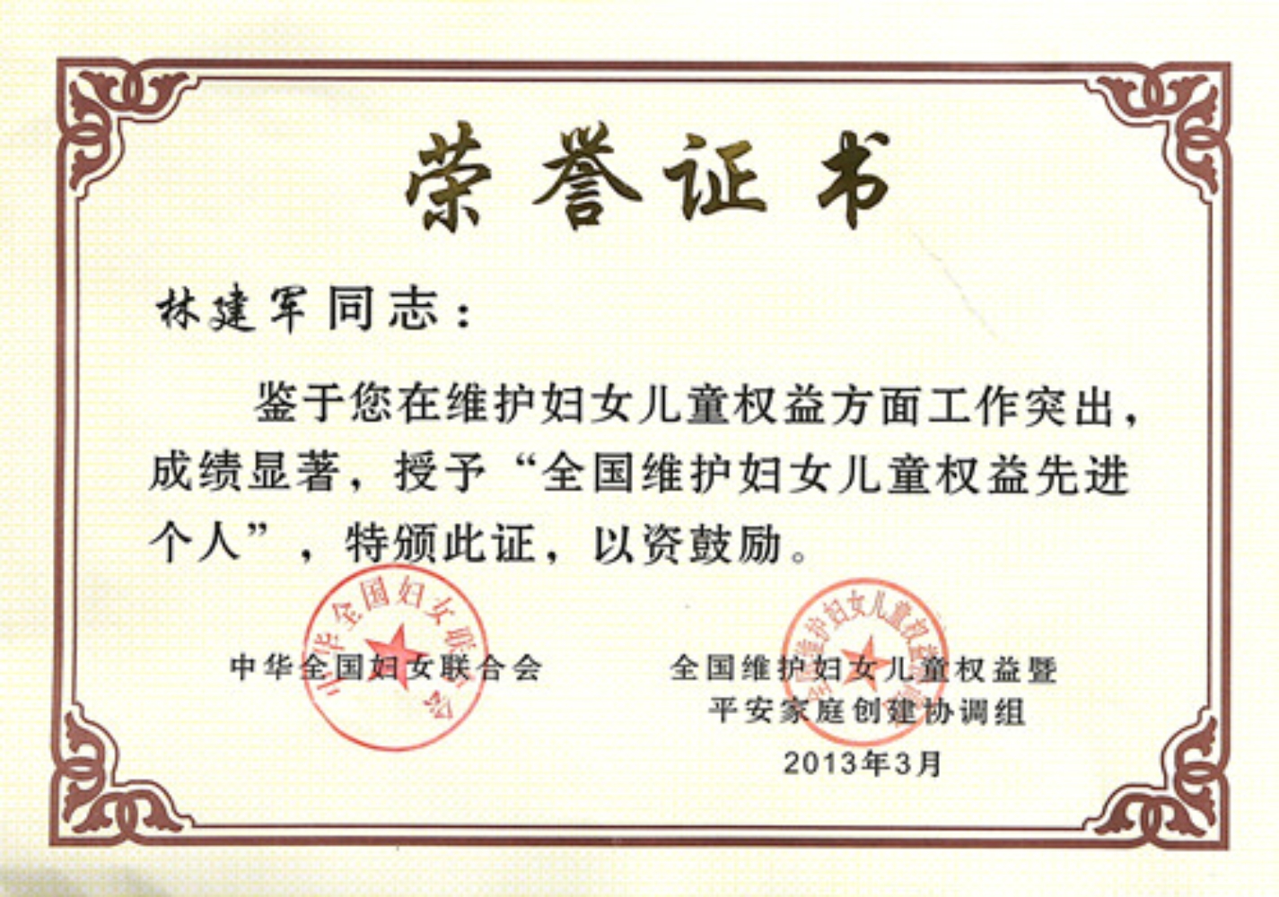 2011 | 全国妇联、全国人大法工委立法室 | 反对家庭暴力立法立项论证 |