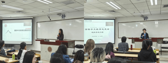 学校干部培训部副部长、项目前负责人陆萍从项目背景、报名要求、任职待遇以及选派流程四个方面展对该项目进行了全面介绍。指导同学们提前做好规划,学好专业知识,掌握中华才艺,同时突破思维局限,为自己创造更多发展机会。随后,薛晶晶结合国际中文教育志愿者选拔考试的专业知识与技能、面试内容和重点以及相关注意事项进行了讲解。