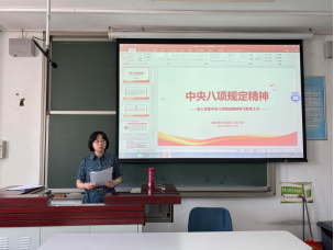 为进一步加强党风廉政建设,推进中央八项规定精神学习教育,6月17日,国际教育学院教工党支部在主楼414开展“中央八项规定精神”专题党课学习。本次党课由教工党支部书记张娇主讲,全体党员参加学习。