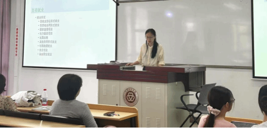 谭翠老师以21级汉教专业同学们的毕业去向为例,为同学们展示了多元化的职业发展路径。据21级汉教专业学生的就业方向来看,有的选择国内外继续升学,有的考入中小学教师编制,也有的成功申请到国家汉办志愿者和西部计划志愿者项目,还有部分同学进入教育培训机构或选择自主创业。
