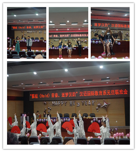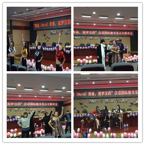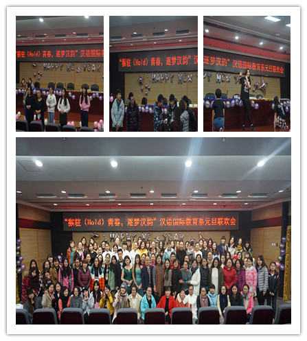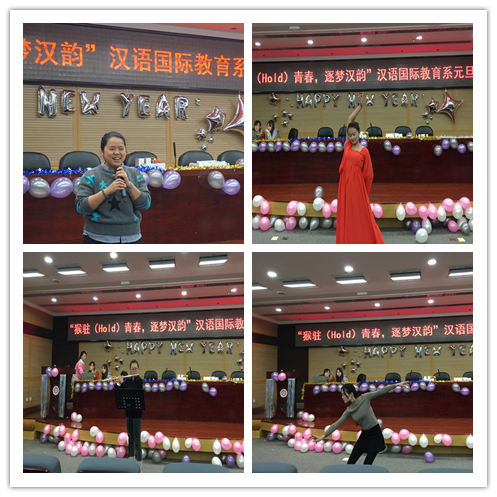 2015年12月28日中午13点,bwin必赢中国官网的报告厅华灯璀璨,大家齐聚一堂, 由师生组成的四位主持人闪亮登场,在嘉宾介绍后,系主任寿静心教授和陈丽君书记为全系师生送上了温馨祝福。随后,在一支动感十足的开场舞中拉开了汉语国际教育系2015年“猴驻(Hold)青春,逐梦汉韵”元旦联欢会的序幕。