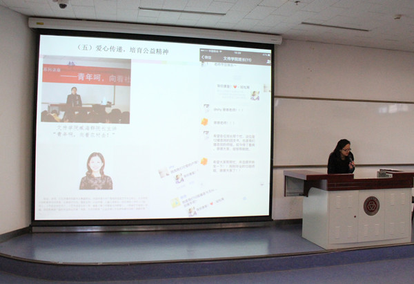张洁介绍了2017年学院学生工作,强调要加强学风建设,并提出本学期着力做好的三项工作:一是积极申报中华优秀诵读新媒体创新项目;二是启动学生实践活动征集活动,调动学生参与的积极性;三是建立“咏美校友基金”(该基金由2007级播音与主持毕业生贺永美捐助),奖励优秀学生。