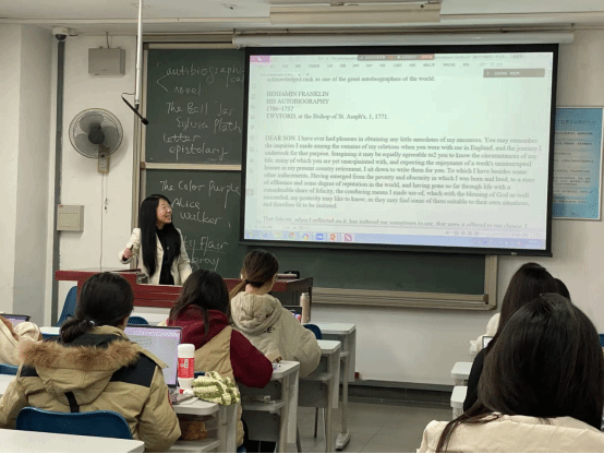 (钱亚萍副教授在讲授英语微专业《英美文学》课程)